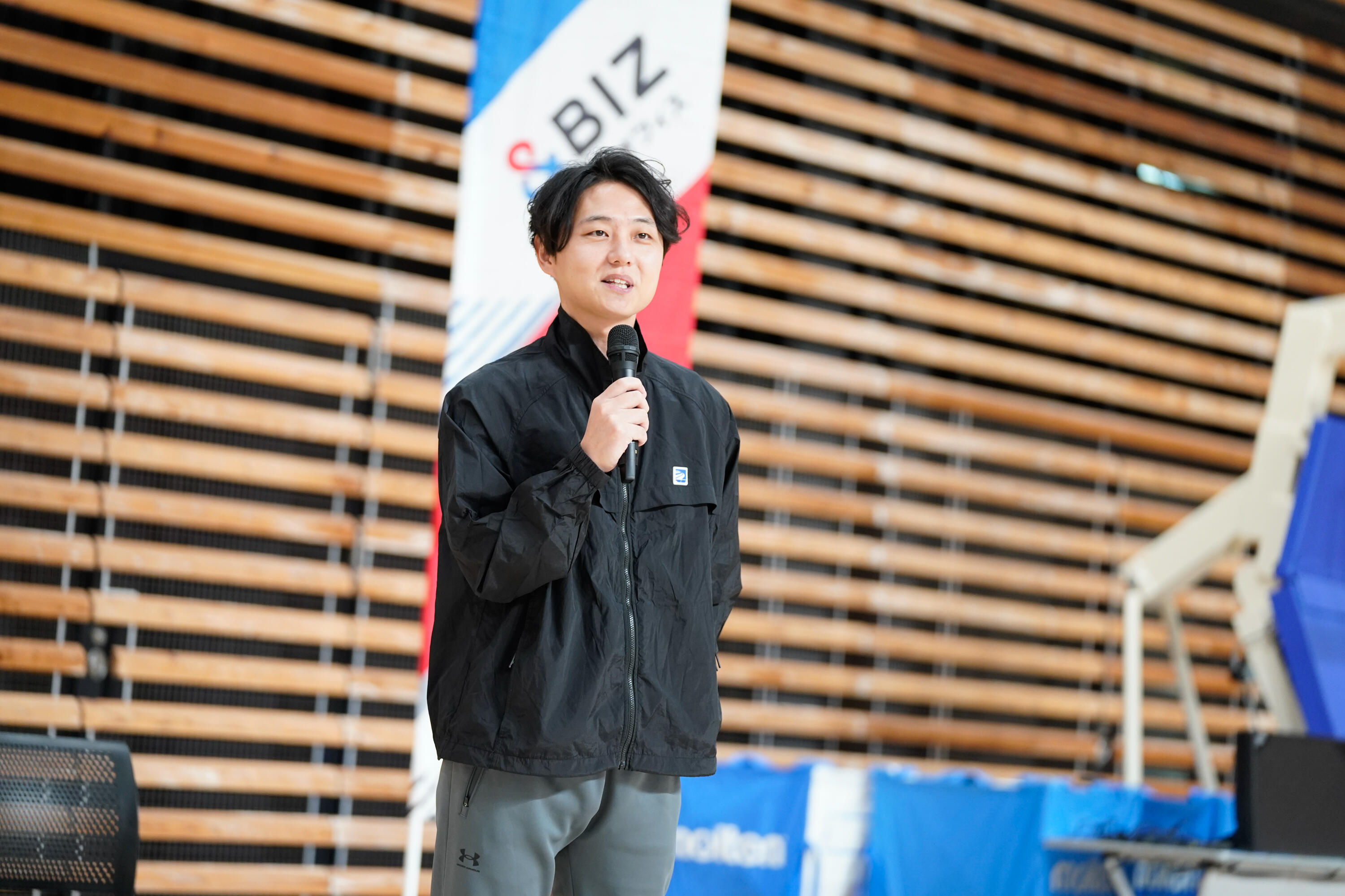 当日は、現役プロバスケットボール選手の田渡 凌さん、現役引退後に一般企業で新たなキャリアを築かれている伊藤 駿さんを講師としてお迎えしました。さらに、MCには多方面で司会として活躍する辻 大地さん(現・群馬クレインサンダーズ所属・辻直人選手の兄)にご登壇いただきました。