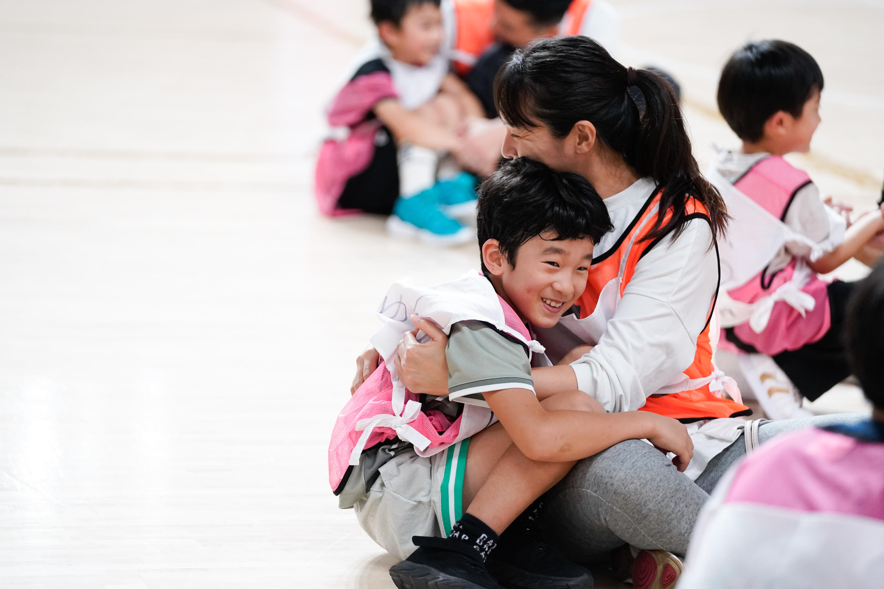 最初は照れくさそうにしていた子どもたちも、勇気を出して「あいしてる」と気持ちをまっすぐに伝えていました。その言葉を受け取った保護者の表情が一気にやわらぎ、会場全体が温かい空気に包まれ、スポーツを通じた挑戦の場でありながら、親子がお互いを想い合うきっかけにもなる、貴重な時間となりました。