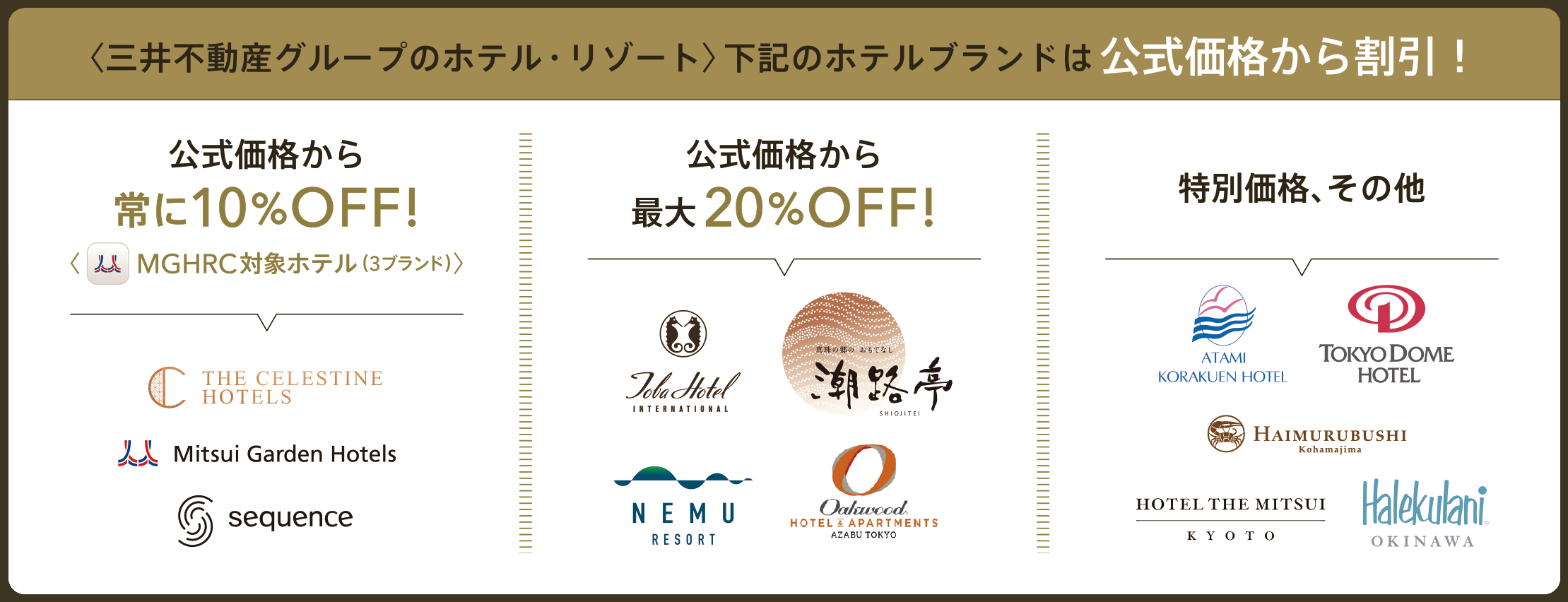 &BIZ会員様とその3親等以内のご家族であれば、年間を通して「法人優待の特別価格」で三井不動産のホテル&リゾートをご予約いただけます。
