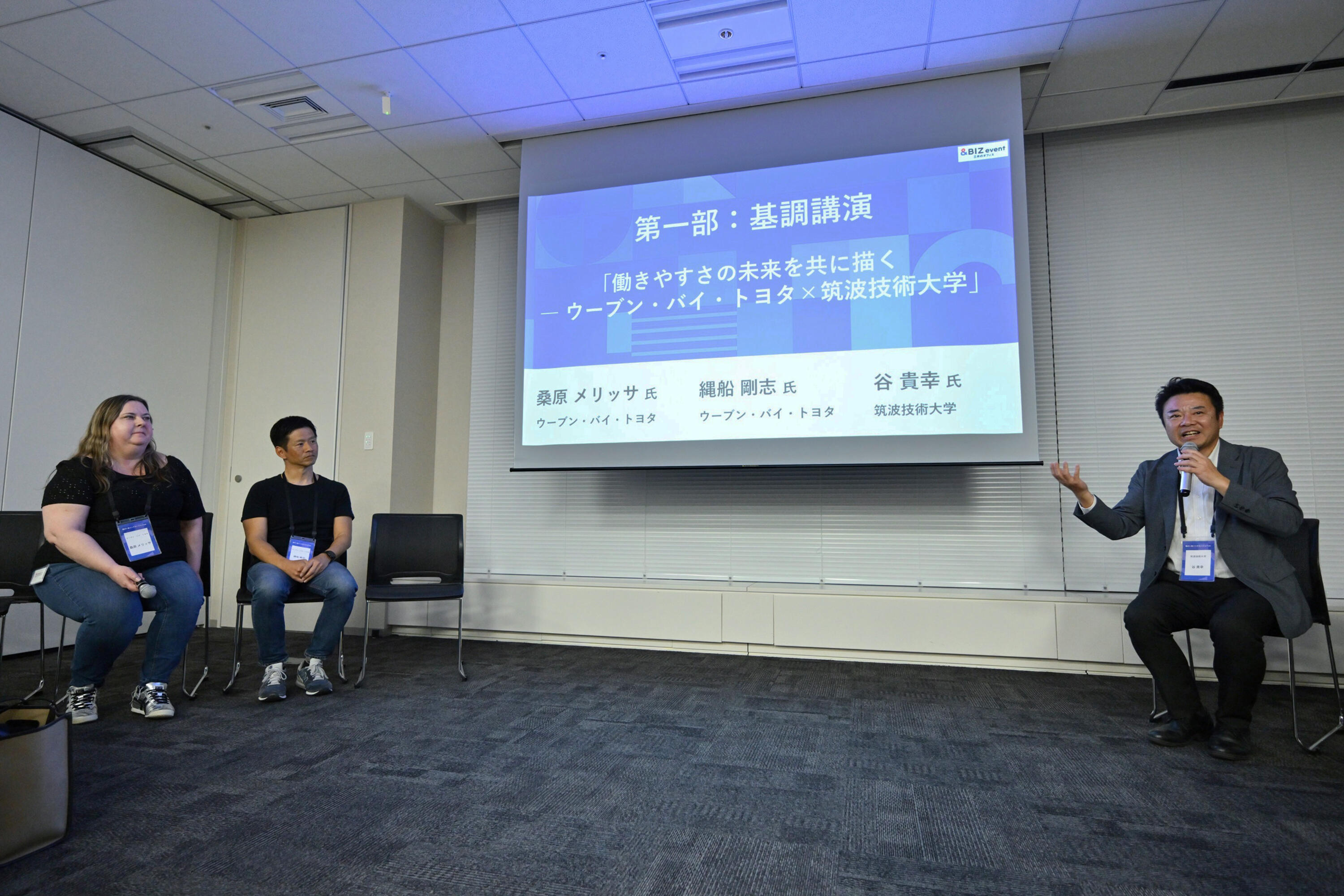 プログラムの第1部として、主催のウーブン・バイ・トヨタおよび筑波技術大学にて、『働きやすさの未来を共に描く』をテーマとした基調講演が展開されました。