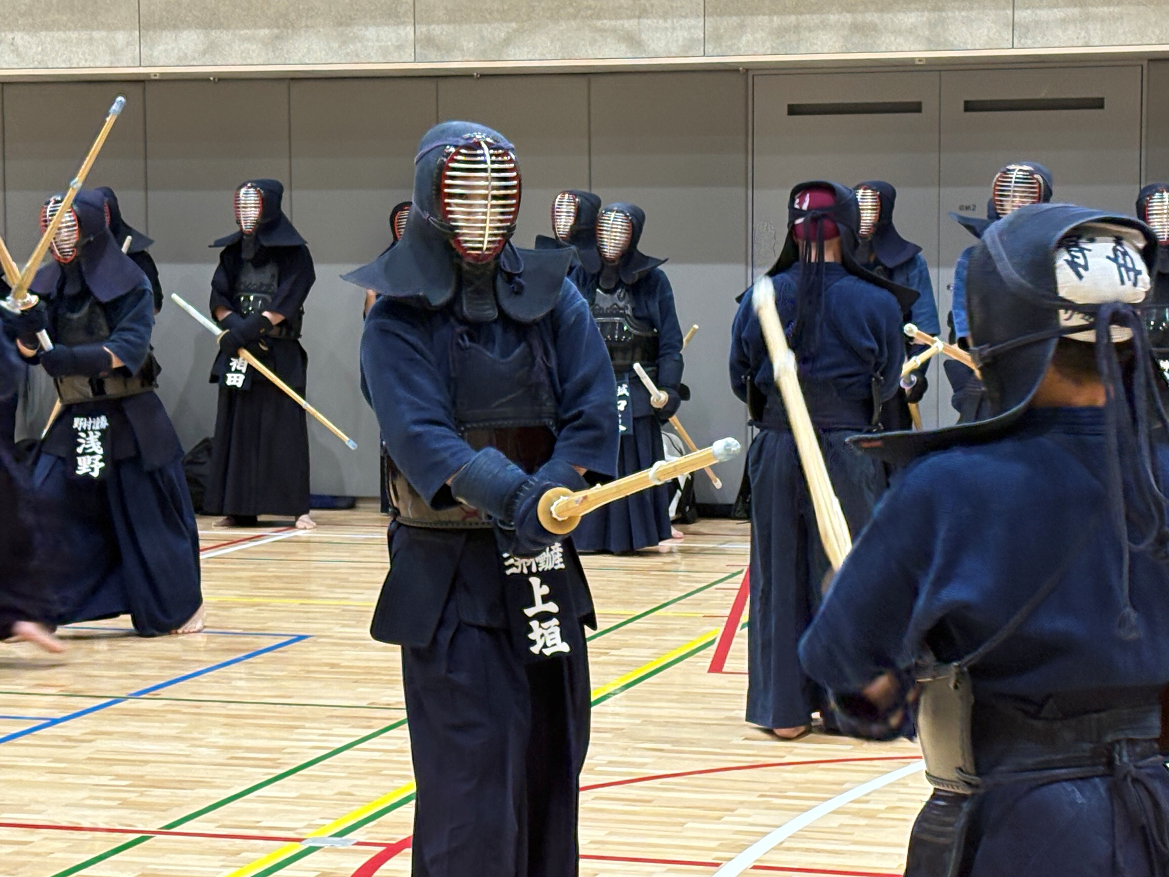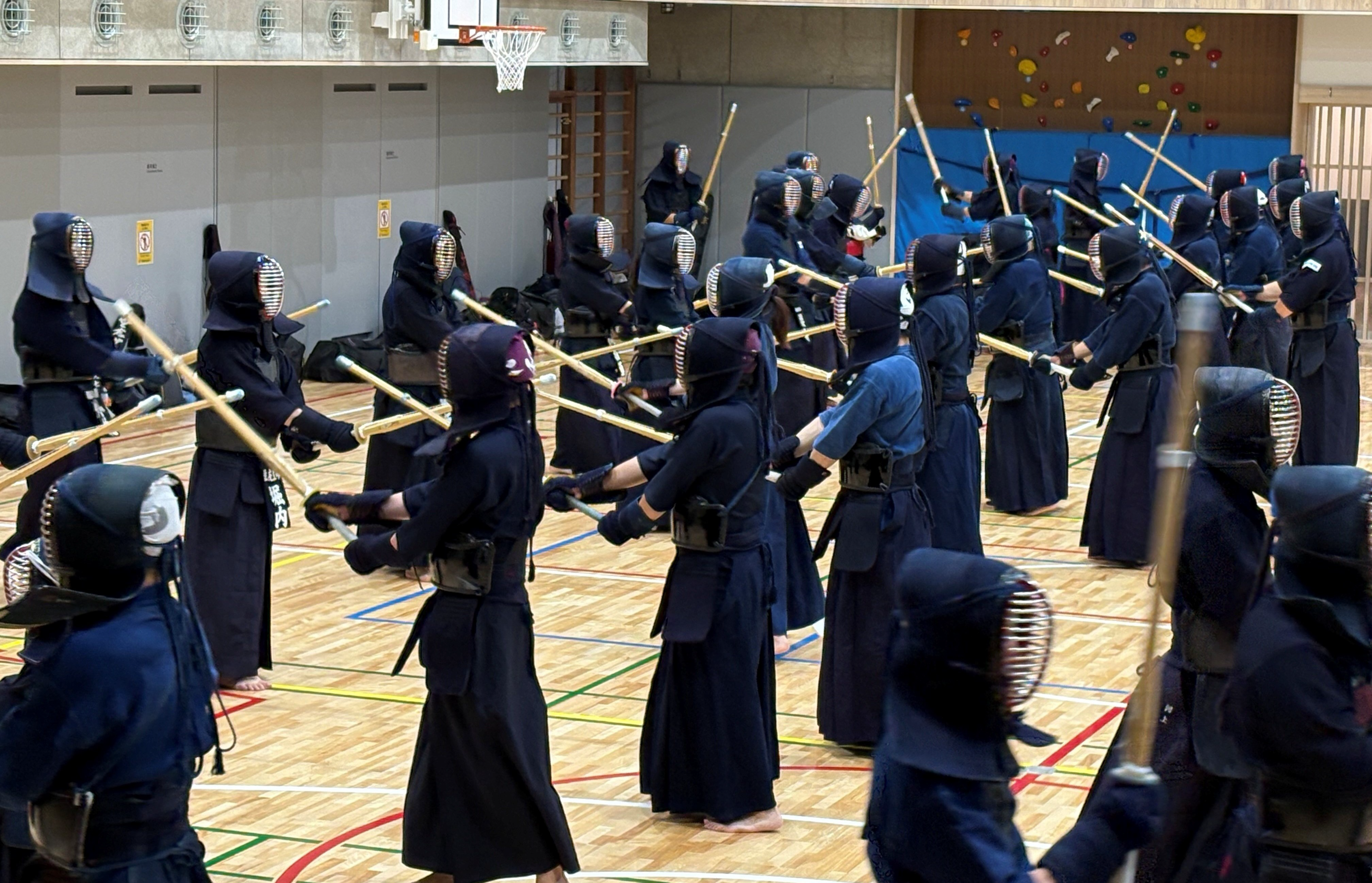 前半は、中央区立城東小学校体育館での剣道稽古会からスタート。参加者は企業の垣根を越えて剣道を通じて交流し、初心者から経験者まで一緒に汗を流しました。稽古後には参加者同士で自然と会話が生まれ、和やかな雰囲気が広がりました。