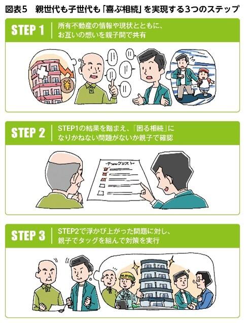 子世代が「困る相続」を「喜ぶ相続」に変えるステップは図表5の通りです。