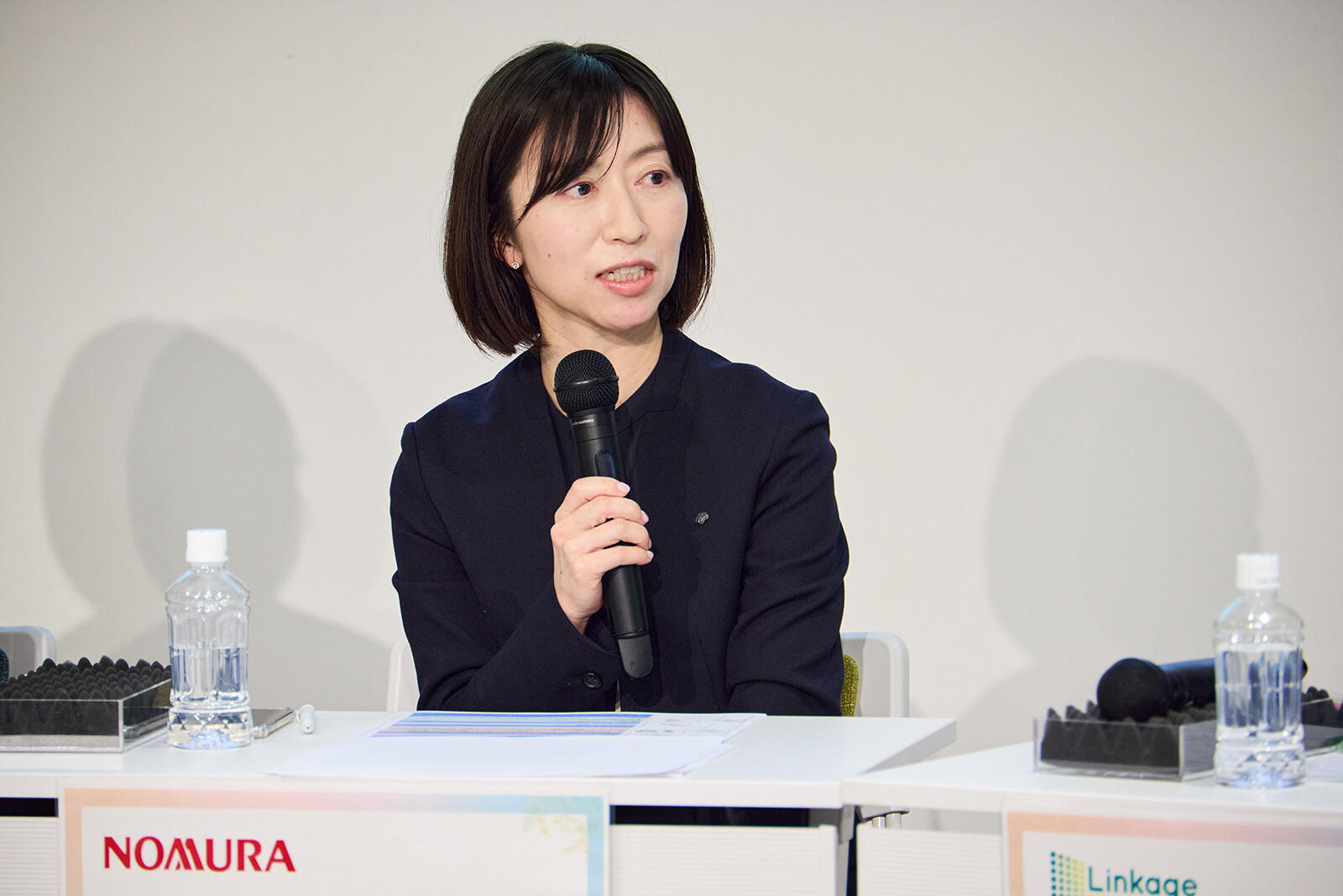 その後、登壇企業各社の具体的な取り組みが紹介されました。野村證券の河野さんからは、女性社員の健康支援の一環として導入した低用量ピルの服薬支援制度について説明がありました。この制度は、45歳以下の女性社員を対象に、オンライン診療を通じて低用量ピルを処方し、会社が全額費用を負担するというもの。河野さんは「導入後、予想を超える申し込みがあり、多くの社員から『会社がここまでサポートしてくれるとは思わなかった』という感謝の声が寄せられ、やってよかったと感じています」と語りました。また同社では、2025年4月から生理休暇の名称を「F休暇」(FemaleのF)に変更し、PMSの症状にも適用を拡大する予定とのことです。