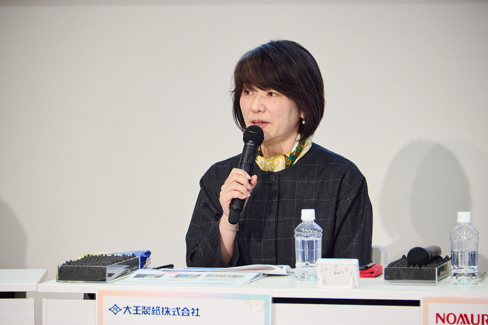 続いて、大王製紙の田邊さんからは、従業員への生理用品の購入支援というメーカーならではの取り組みが紹介されました。同社では、これまでにも子育て中の従業員向けにベビー用オムツやおしりふきの購入支援を実施してきましたが、それを生理用品や介護用品にも拡充する計画とのことです。「当社で仕事をしてくれているからには、快適に働くために必要なものを支援していきたいという思いがあります」と田邊さん。また社外でも、学生向けの「奨学ナプキン」やアフリカでの「ハートサポートプロジェクト」などを通し、経済的な理由で生理用品の購入が難しい人への支援を積極的に展開しています。
