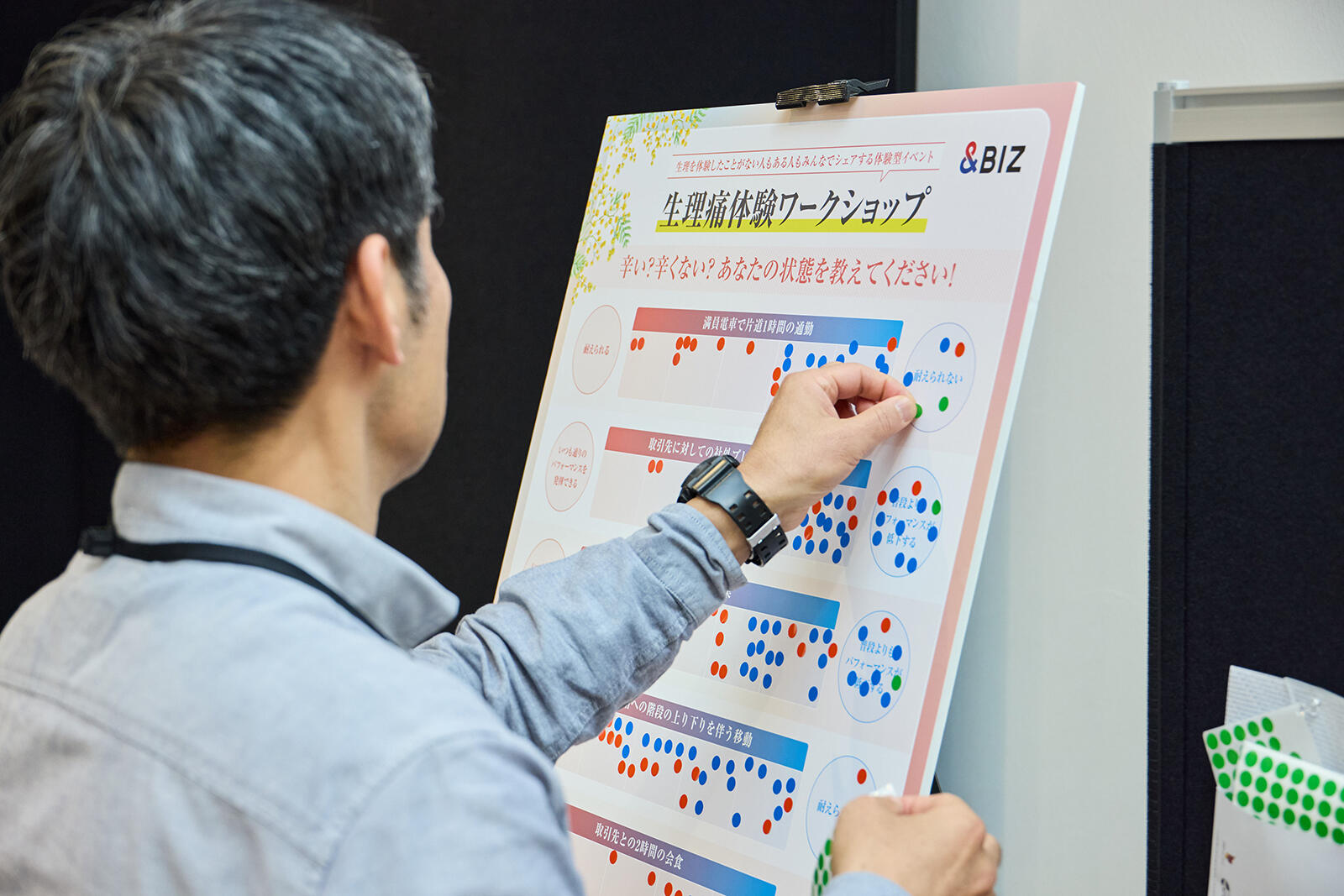 グループワーク後の発表では、生理休暇が使いたくても生理痛について話しにくい雰囲気への課題感や、男性として相談を受けたときどう対応すべきかなど、さまざまな意見が出ました。また、「冷えを避けるために空調は高めにしてほしい」「10分、15分でいいから横になって休めるスペースが社内にあると、生理の人でなくても助かるのでは」など、具体的に設備のあり方に触れる声も挙がりました。
