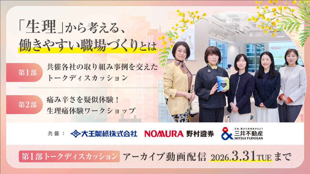 男性はもちろん、女性同士でも普段なかなか話す機会の少ない「生理」というテーマを起点に、健康課題への向き合い方、働きやすい職場づくりなどに視野を広げるイベントとなりました。『三井のオフィス』では今後も女性活躍推進のため、さまざまなイベントや情報発信を続けていきます。