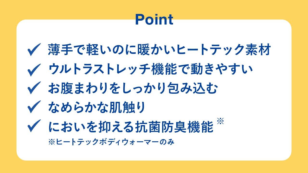 イベントの賞品としては、季節を問わず日常使いしやすいと評判の「ヒートテックボディウォーマー」と「ヒートテックウエストウォームショートパンツ」を提供いただきました。