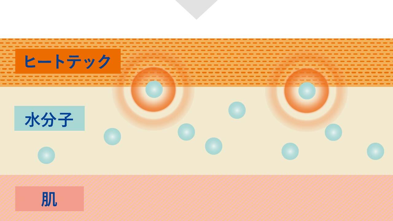 「薄くて軽いのに暖かい」ヒートテックの秘密は、4種類の繊維それぞれの特性を組み合わせたことにあります。 レーヨンが体から常時発散される水分をキャッチし、その運動エネルギーを熱に変換。