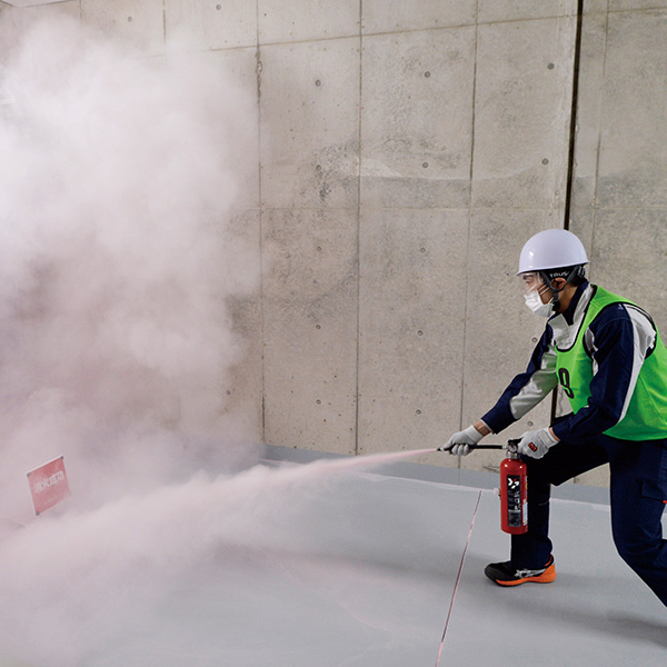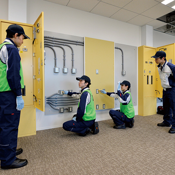新旧どのビルでも対応できる高い技術力の平準化、様々なシーンに応用できる現場力の修得と、防災対応力のさらなる向上を目的としています。