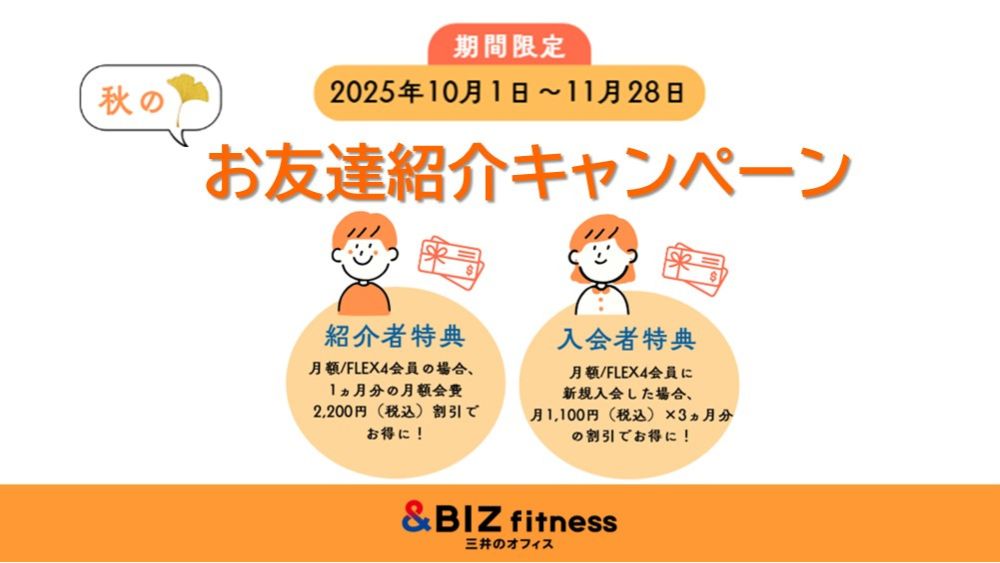 【&BIZ fitness 】お友達紹介キャンペーン実施のお知らせ